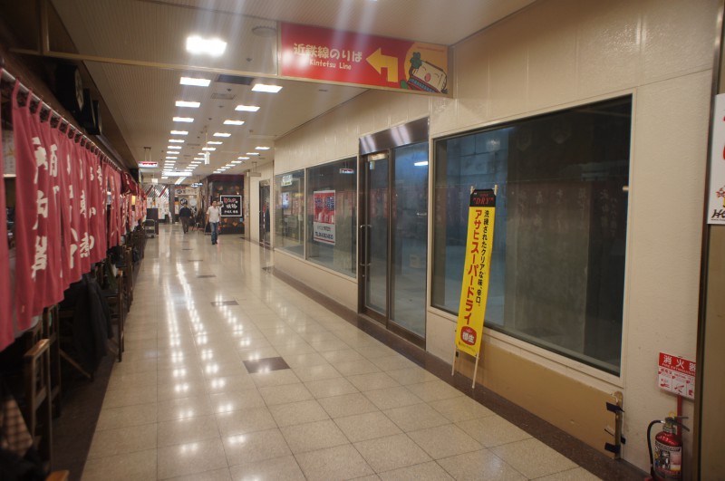 駅直結、目の前は超有名店、人通り多数:全面ガラス張り、重飲食可♪:貸主負担で内装工事相談可♪うえほんまちハイハイタウン空き店舗:地下1階126号B区画:29.02坪